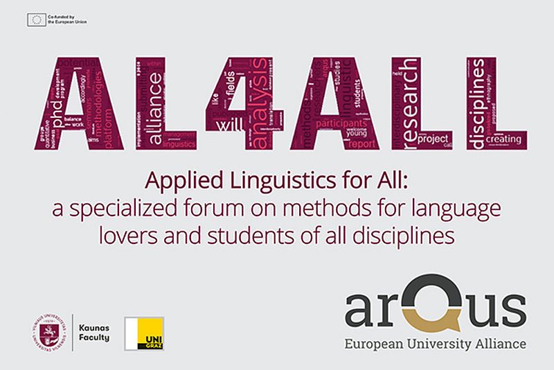 In today's globalized and digitalized world, when striving for more relevant research outcomes, it is vital to seek multiperspectivity in research. This can be fostered via interdisciplinary exchange. We believe that linguistics has always benefitted from methods of other disciplines just as we believe that linguistic methods could benefit other disciplines. AL4ALL seeks to provide a space for discussion, exchange of ideas and growth in all stages of education in PhD studies. In doing so, AL4ALL aims to catalyze the potential of applied linguistics and other methods in order to bridge the gap between different fields of research. AL4ALL provides an online video conferencing platform for PhD candidates and other young researchers from various disciplines who use applied linguistics methods. 10 seminars of 90 minutes each will allow participants not only to present their methods to other peers, but also to engage in fruitful discussions about these methods.